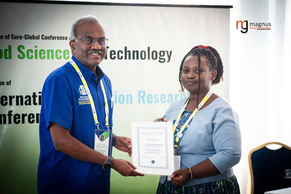 Kasiviswanathan Muthukumarappan felicitating Anjelina William Mwakosya With Oral Pesentation Certificate