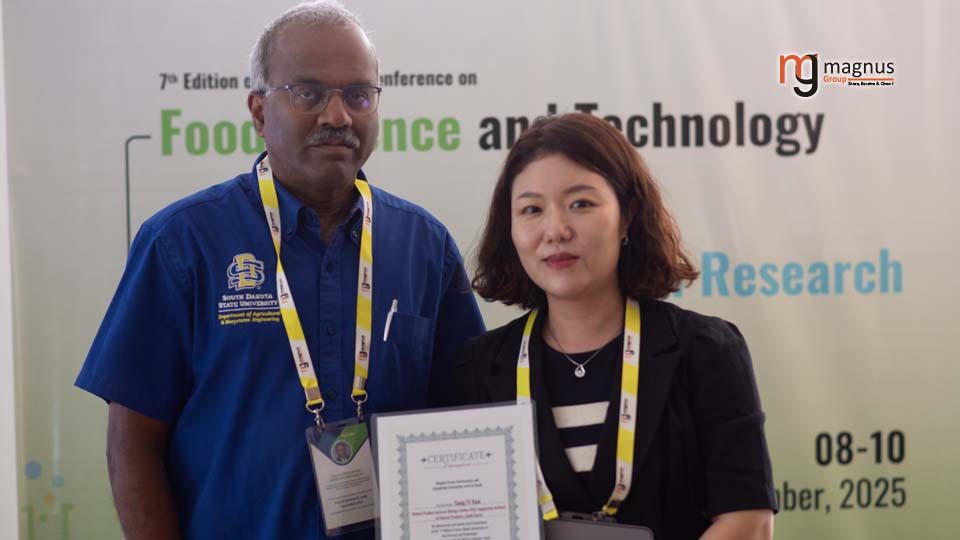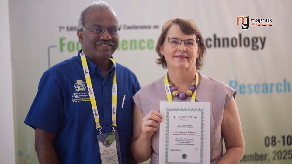 Kasiviswanathan Muthukumarappan felicitating Jaroslawa Rutkowska With Oral Presentation Certificate