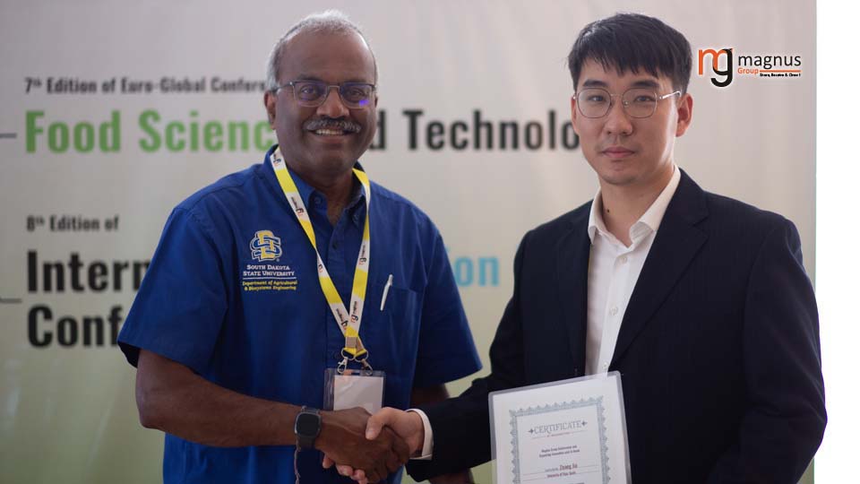 Kasiviswanathan Muthukumarappan felicitating Ziyang Jia With Oral Presentation Certificate