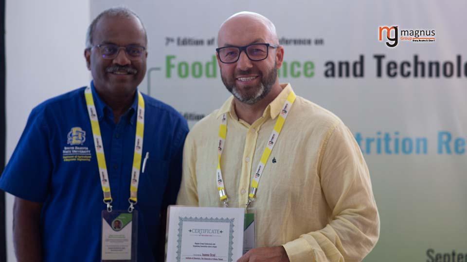 Kasiviswanathan Muthukumarappan felicitating Bartosz G Solowiej With Oral Presentation Certificate