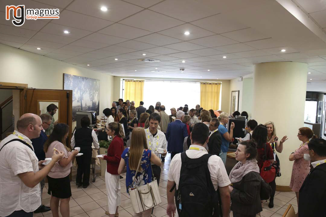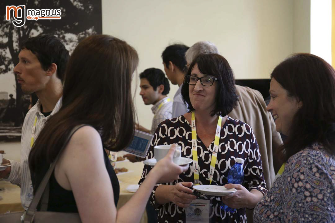 Georgina Kate Such interacting with fellow researchers during coffee break